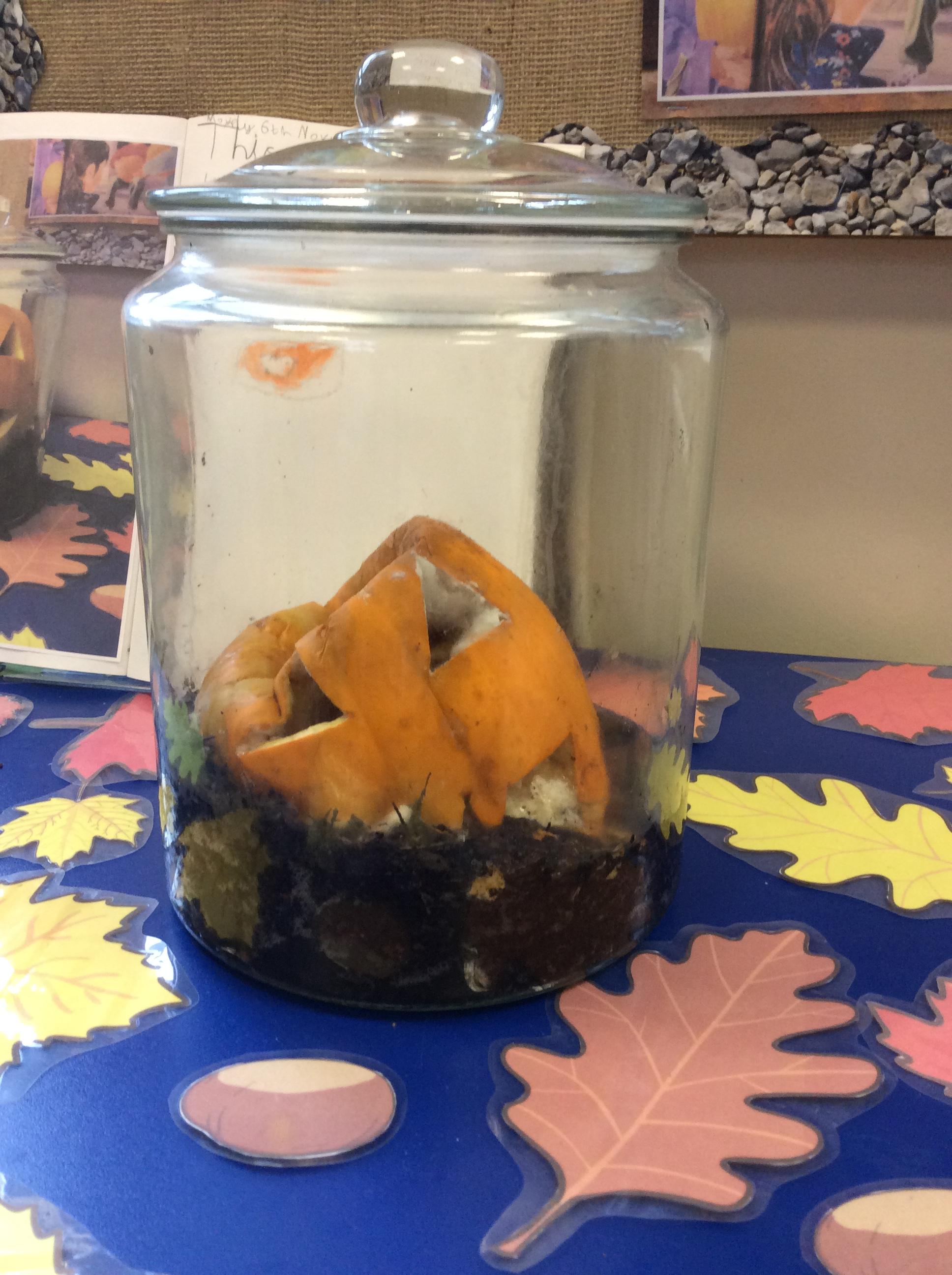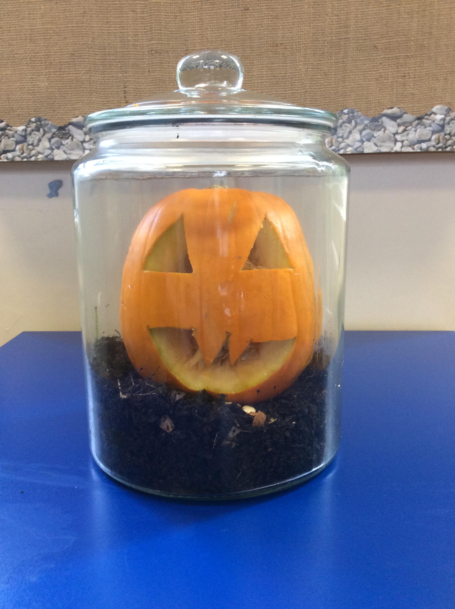 Everybody in the Forest Room, has named our class pumpkin Jack. We have put Jack in a glass jar with some compost. We are going to be keeping a very close eye on Jack over the coming year, to see what changes happen. We will be taking a new picture every Monday afternoon.