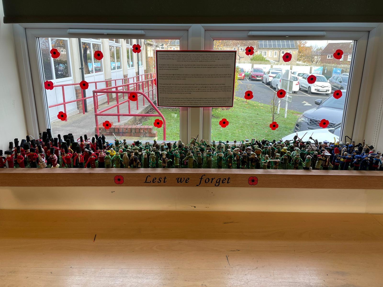 To commemorate Remembrance Day this year, we wanted to create a memorable art installation. Something that would be meaningful, have an impact on the children and help them to understand the significance of the day. We decided to create our own visual army with every child and adult in school.