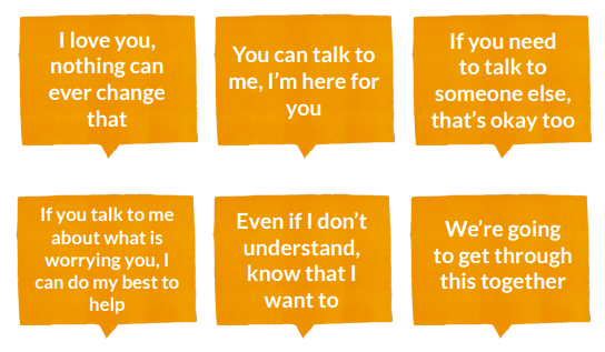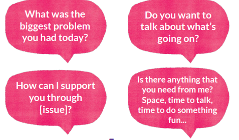 Starting a conversation can be difficult, especially if you’re worried that your child is having a hard time. It doesn’t matter what topic the conversation starts with – it’s about the opportunity it gives you both to talk about feelings and to provide comfort.