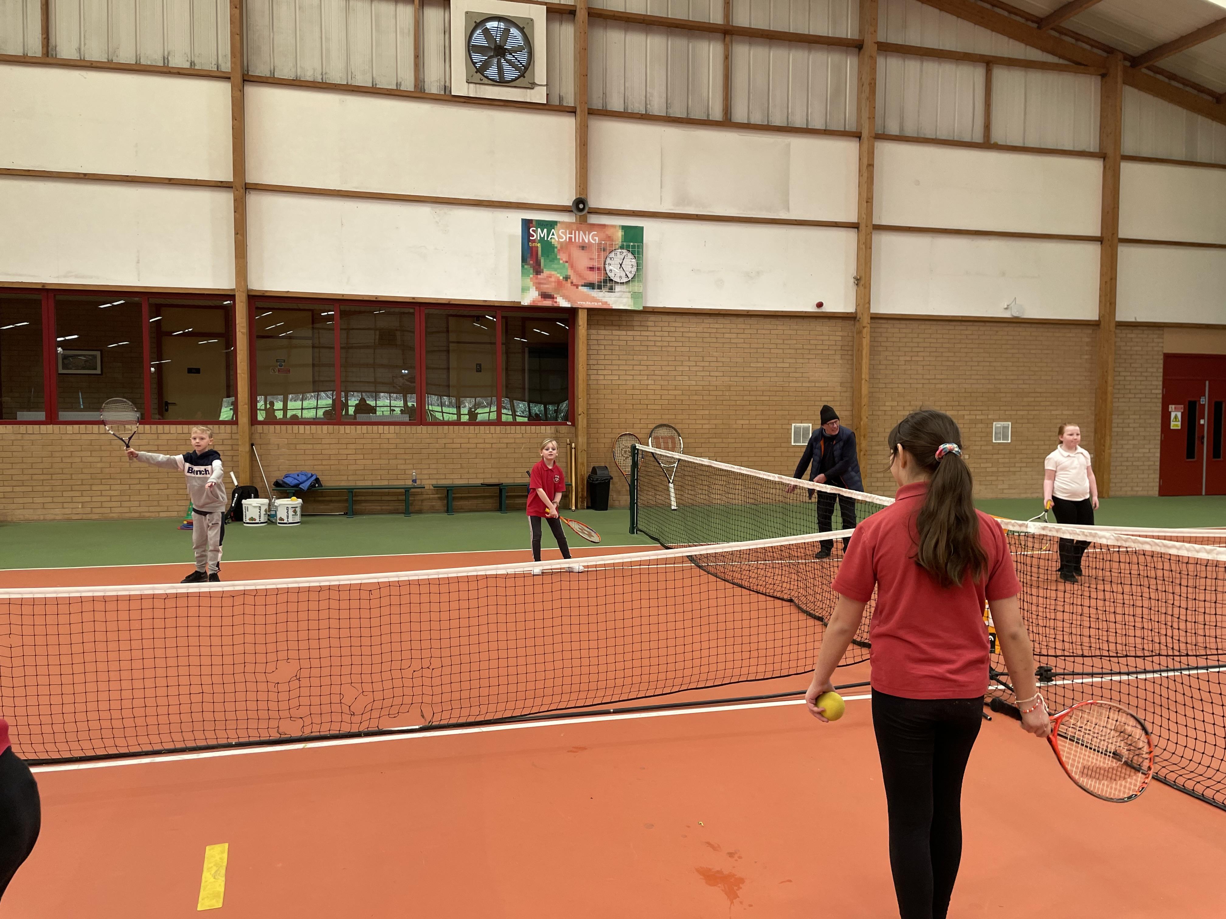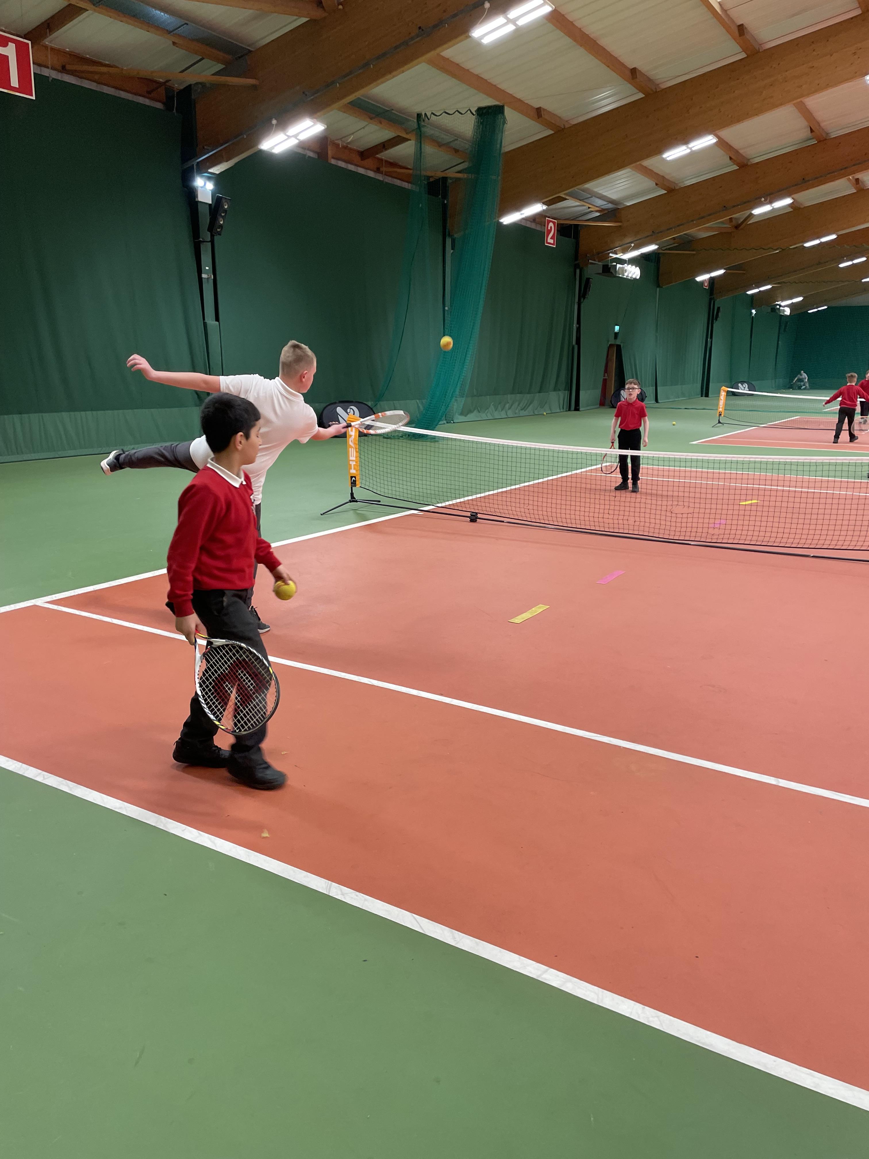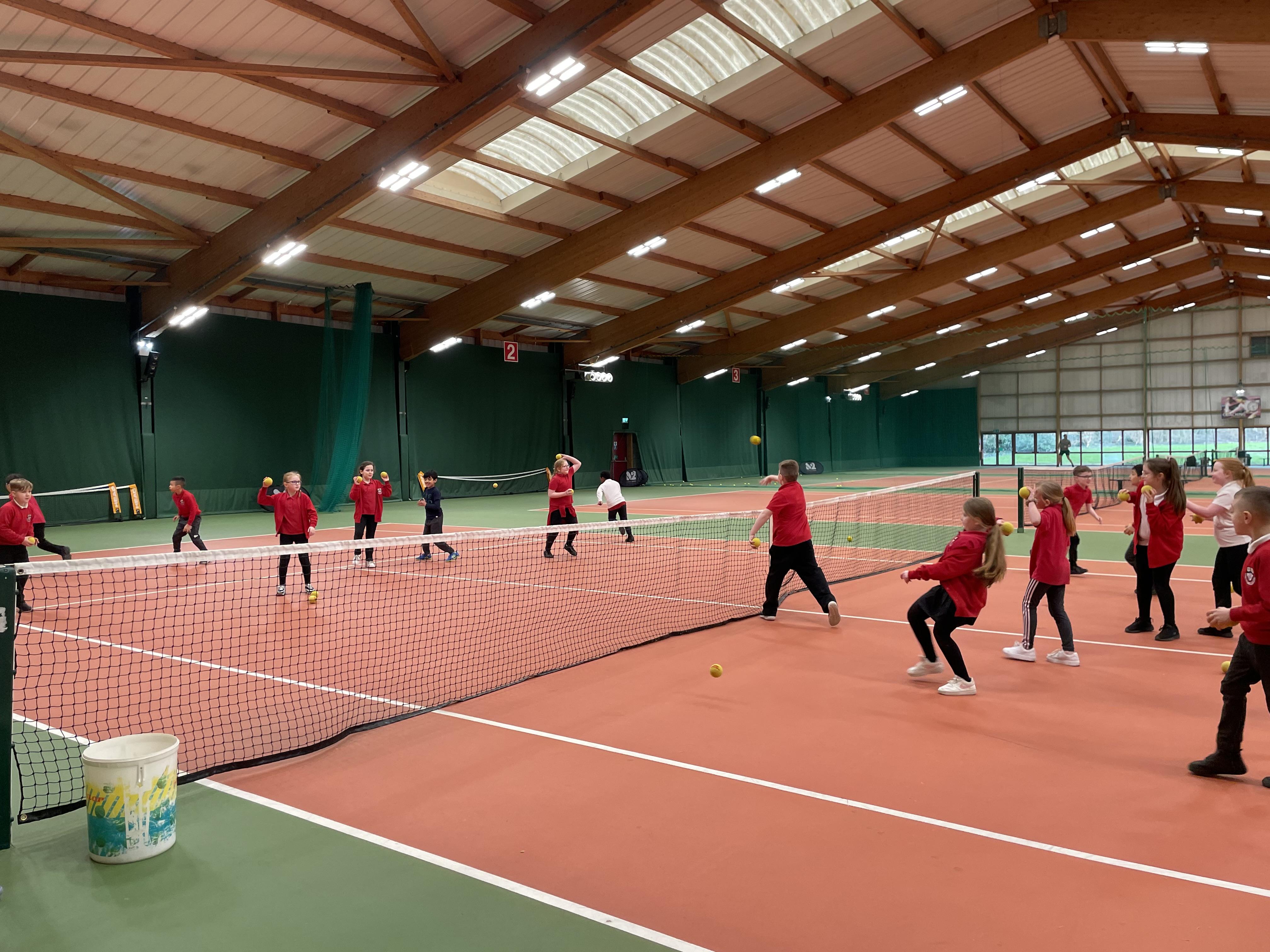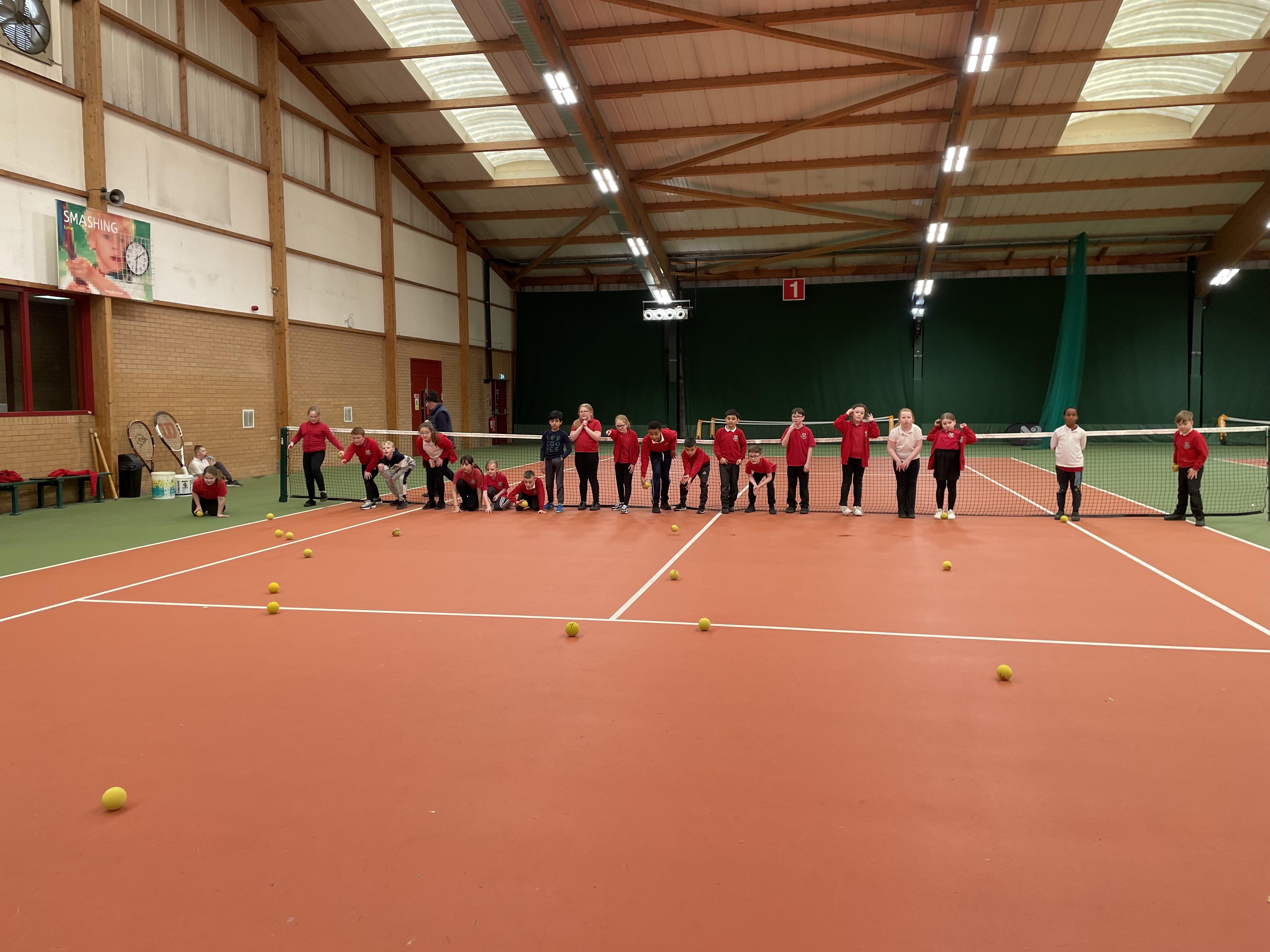 This afternoon 4B went down to the South Ribble Tennis Centre in Preston where we had 2 hours practising our tennis skills that we had learnt in school on the indoor tennis courts. All the children were fabulous and Alison and Dec our tennis coaches were really impressed with them all.