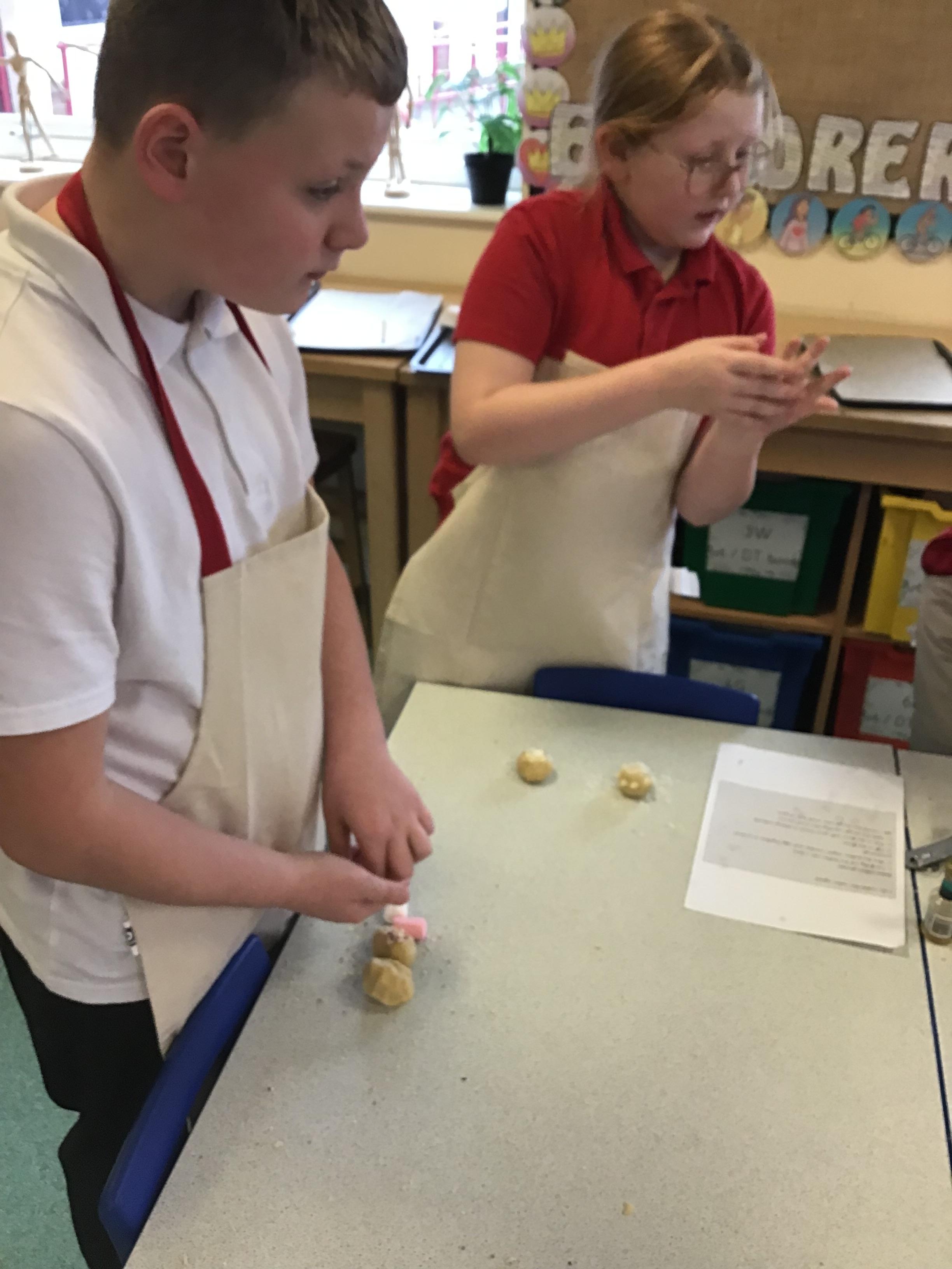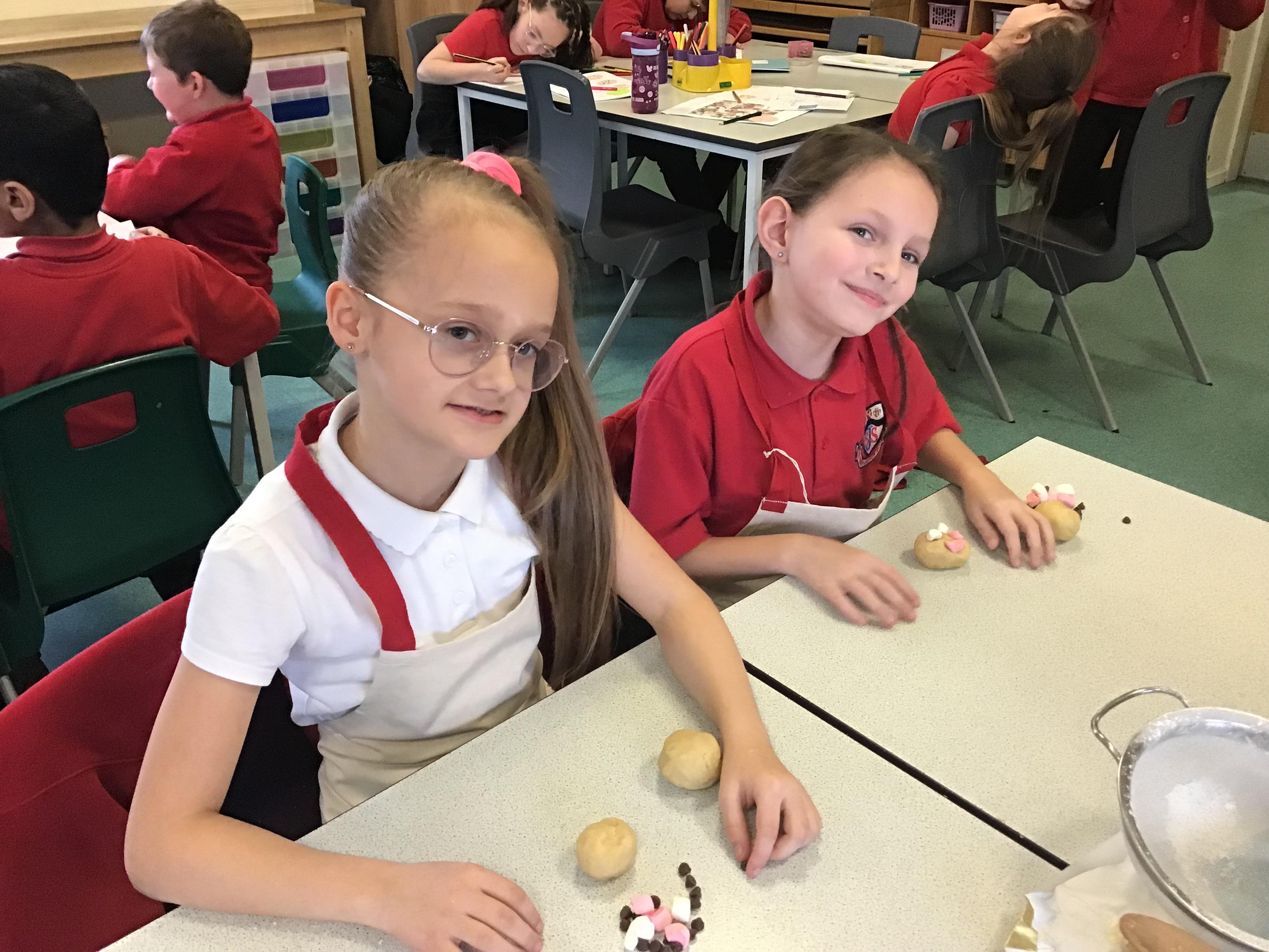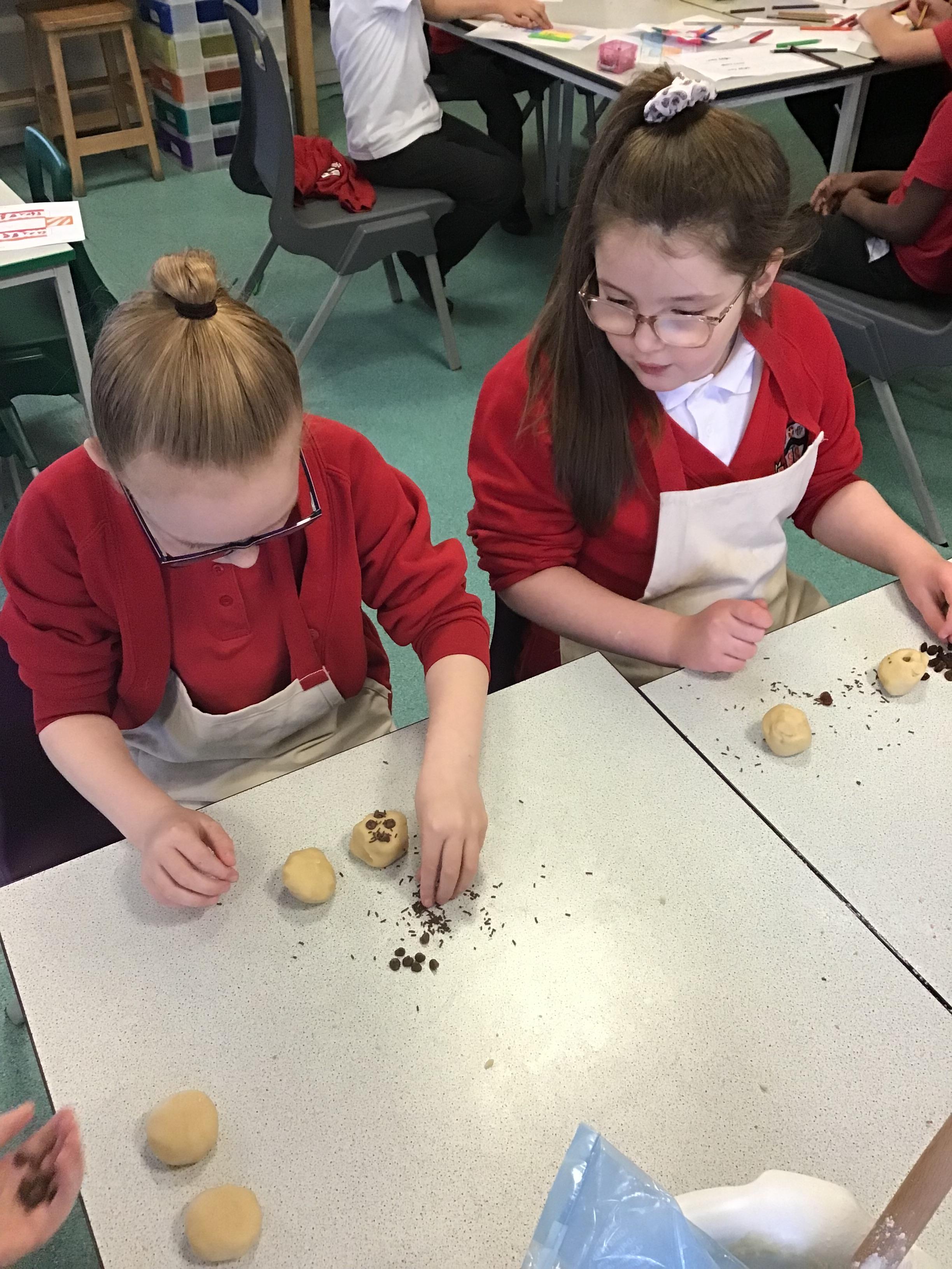 The children then designed their own biscuits. They had to think carefully about their target audience, our budget and adaptation of our basic biscuit recipe. The children then worked in groups again to mix a plain biscuit dough. The dough was then split between each group and the fun began! Each child adapted their plain biscuit using a variety of different ingredients such as chocolate chips, ginger, raisins, marshmallows and coconut.