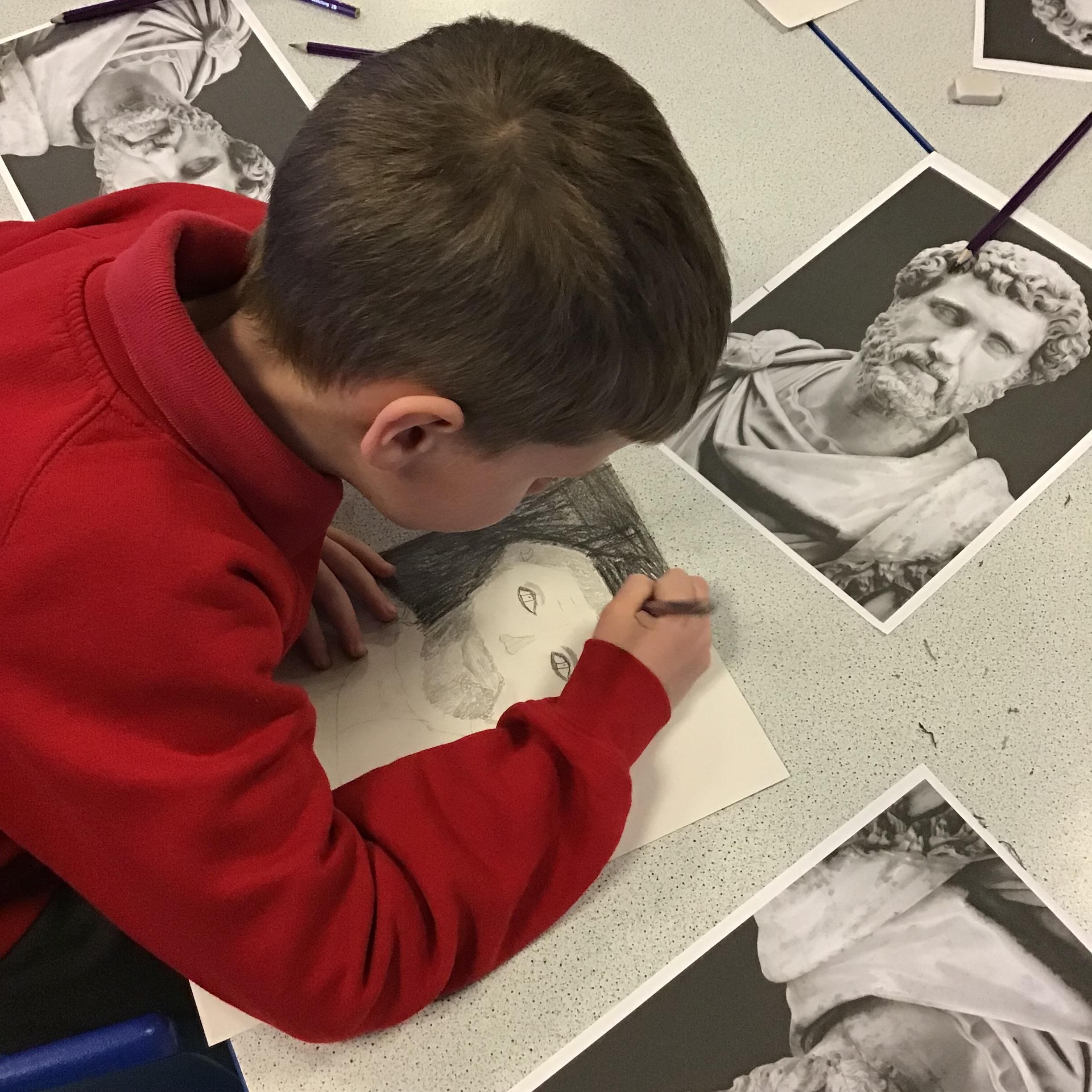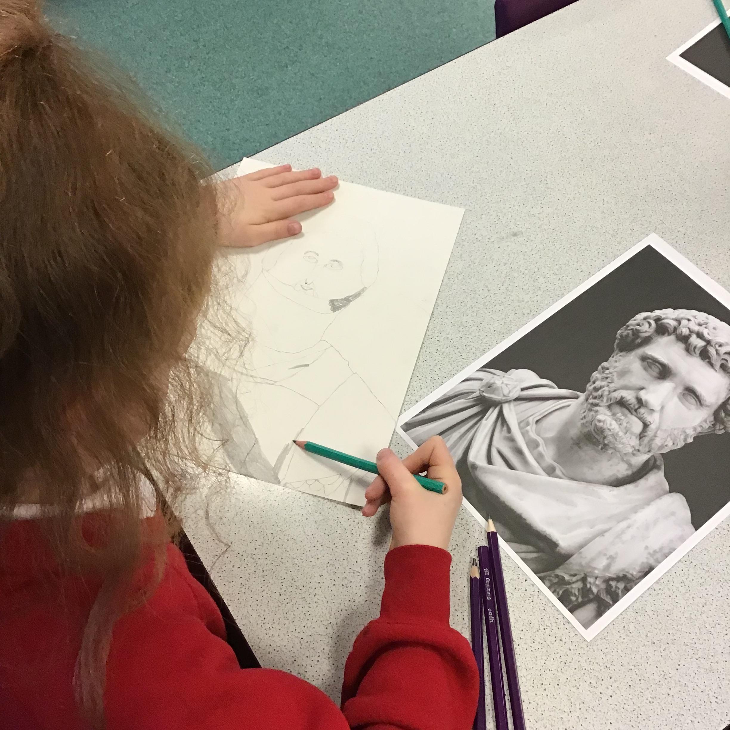We looked at using tone to enhance our 2D drawing of a Roman Emperor's statue, adding shading in the right areas to create the illusion of depth and enhance the quality of our drawings.