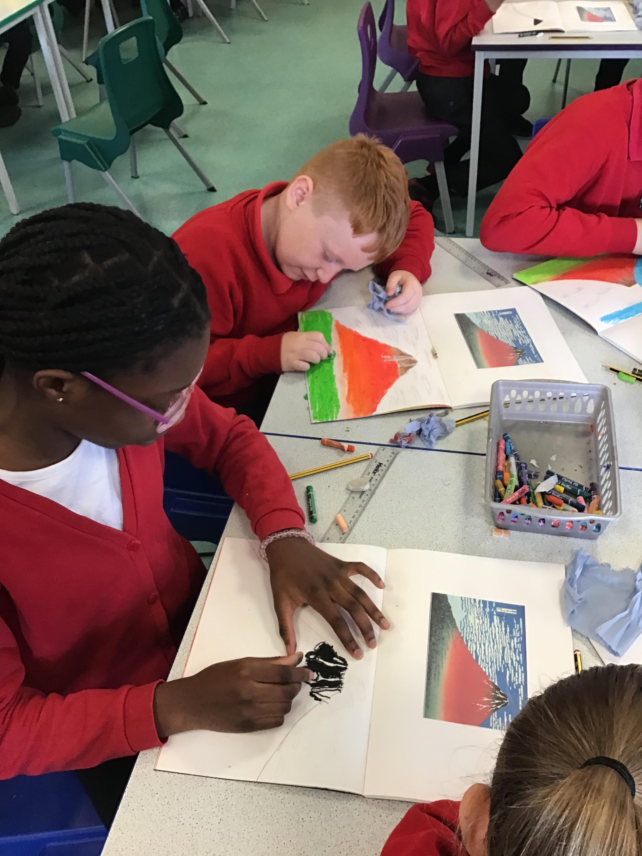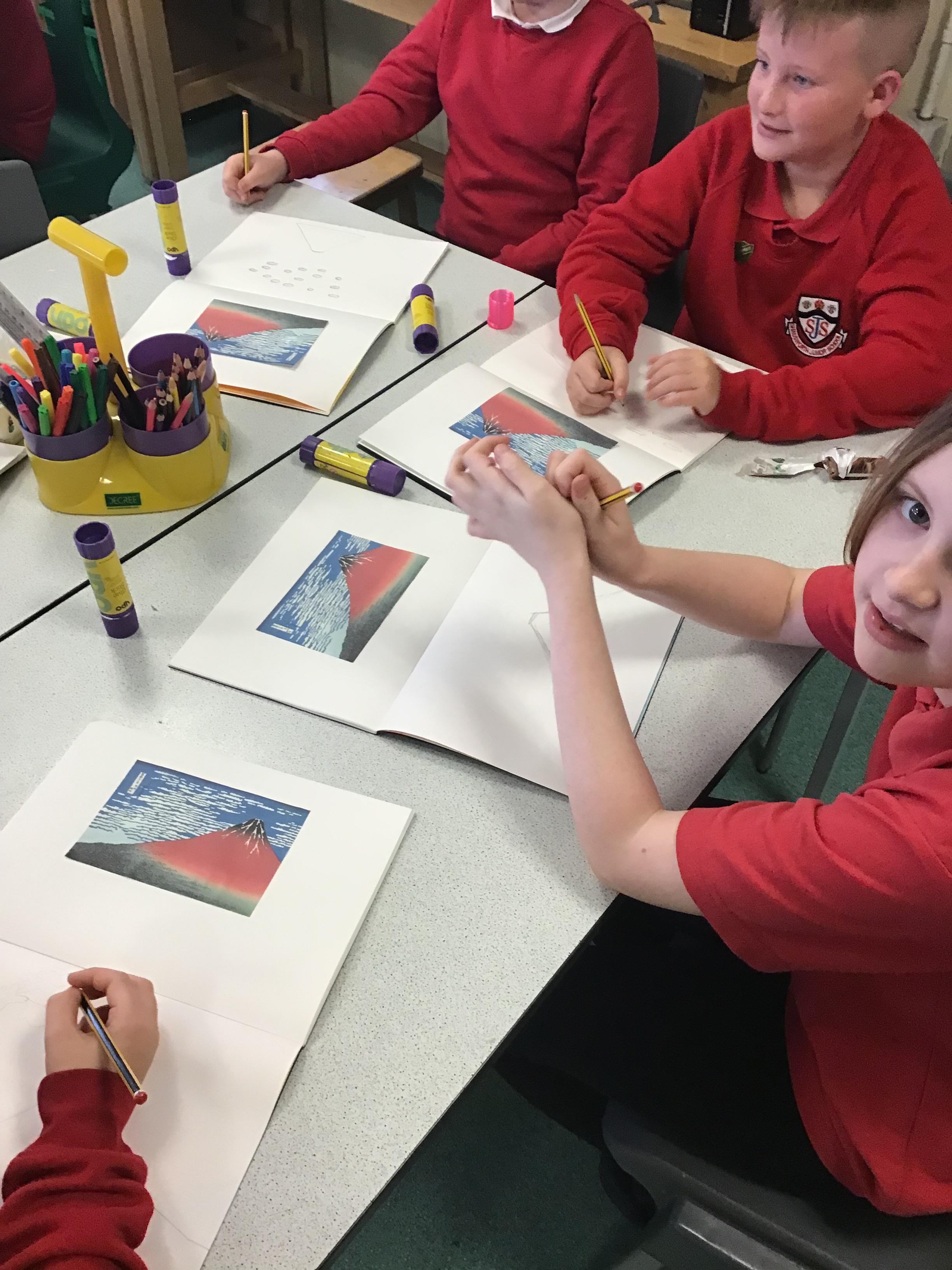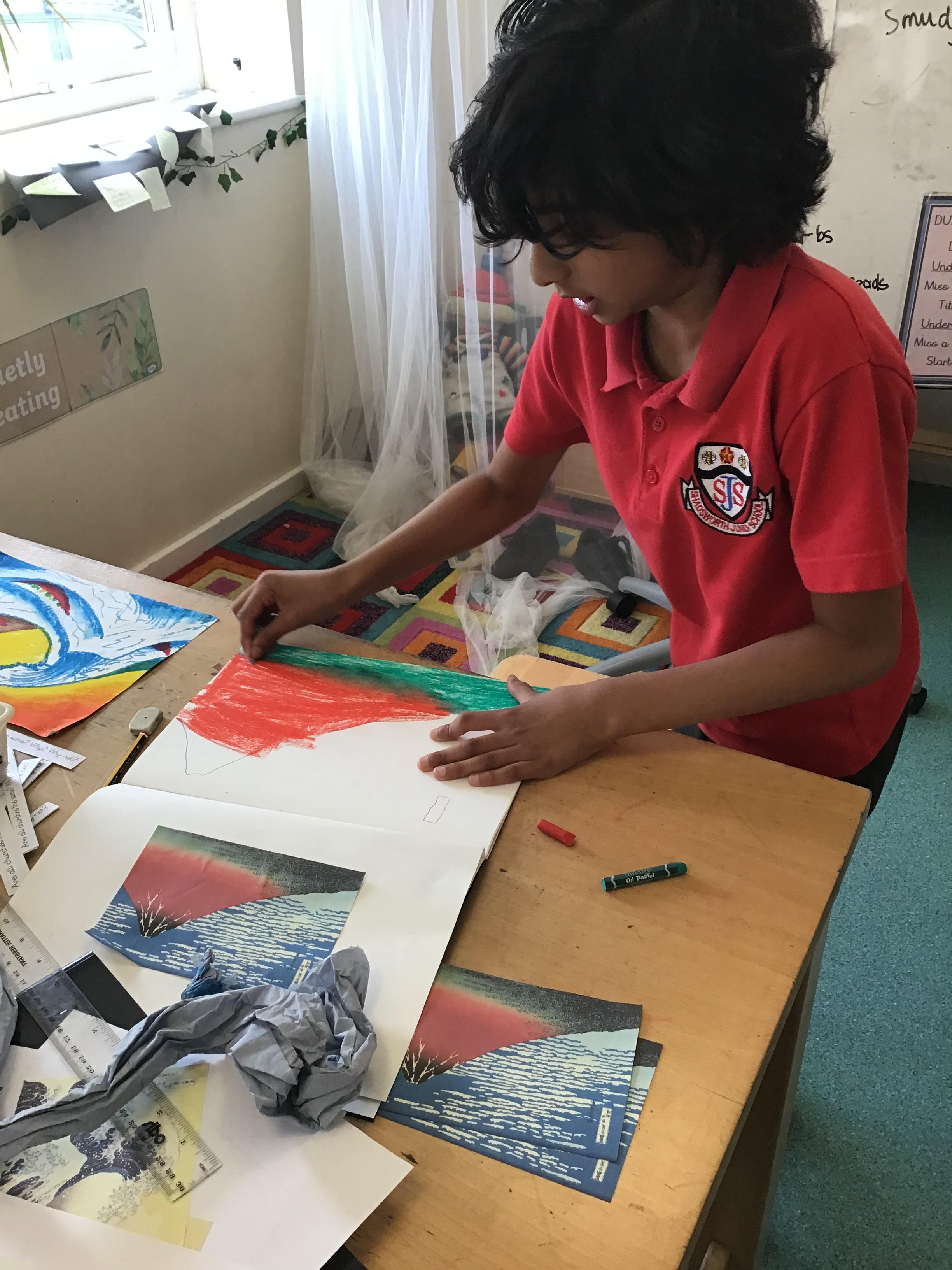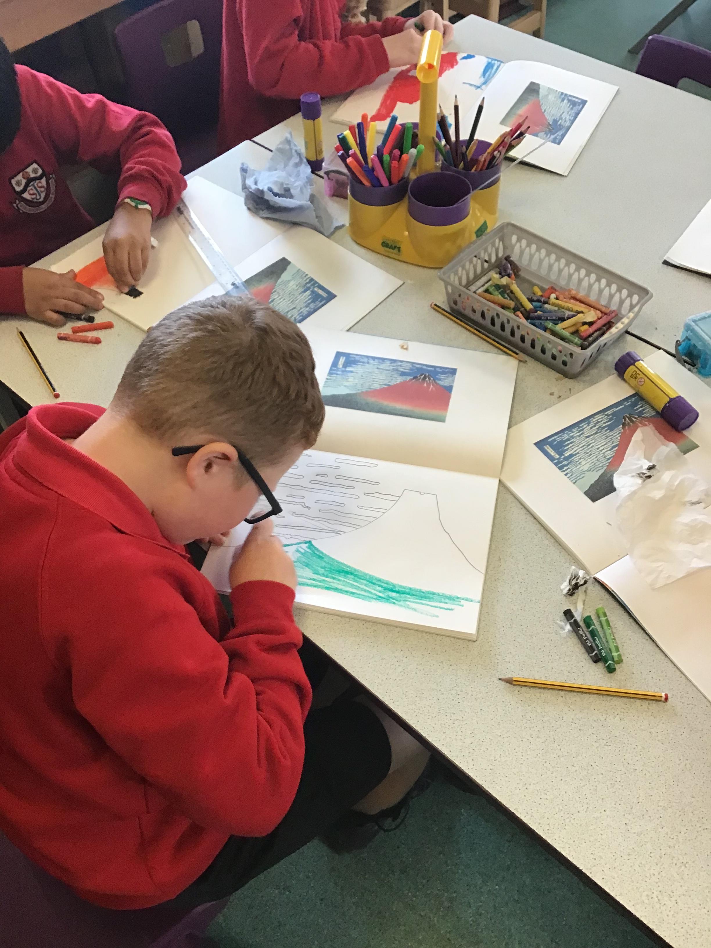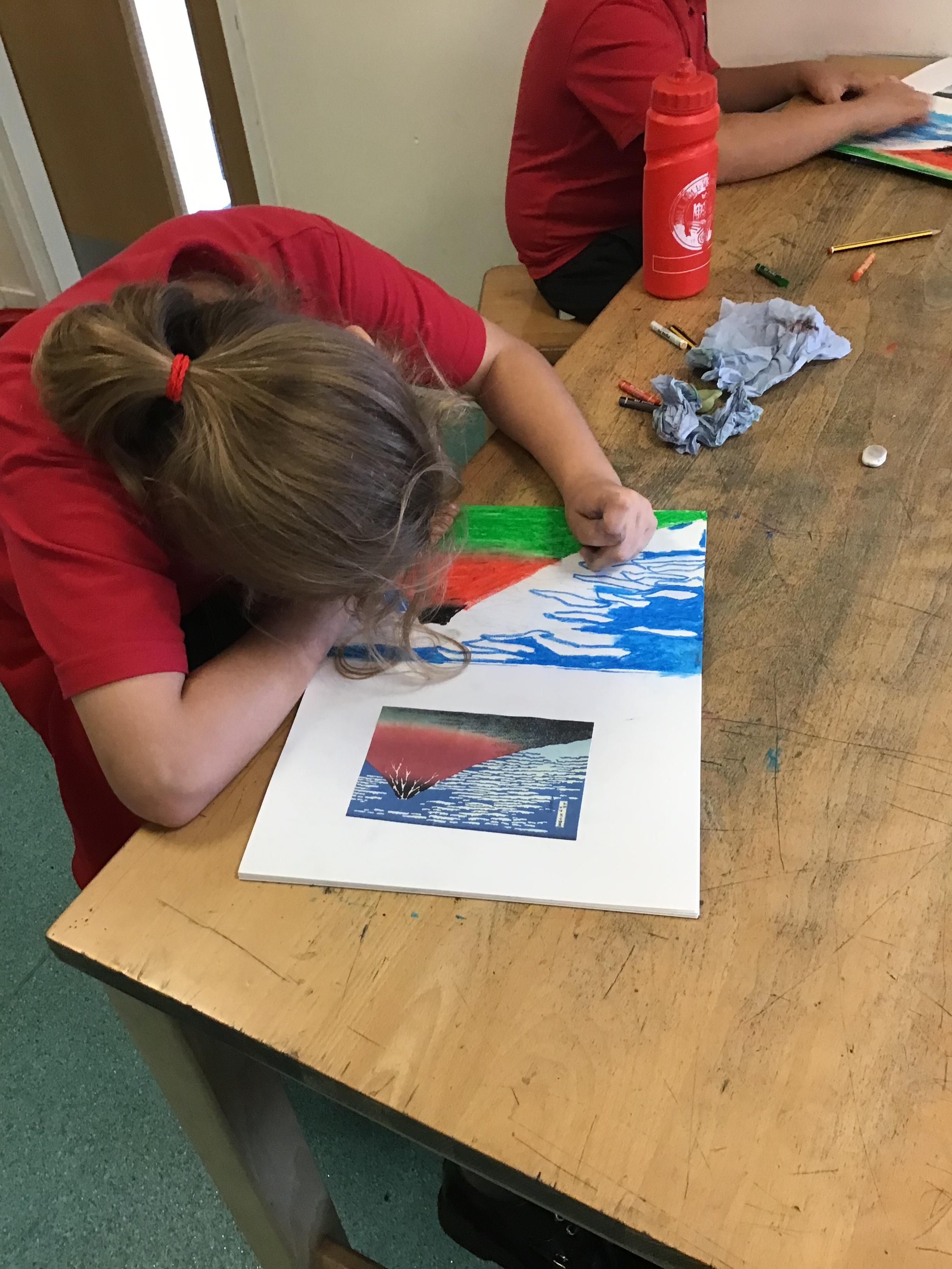 Hokusai- Mt Fuji oil pastel drawings (6H)